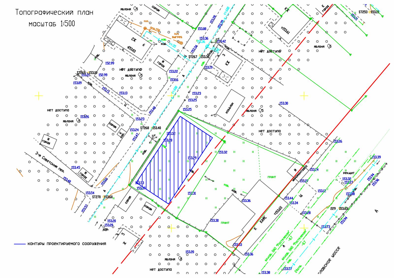 На самом плане выбирается место размещения строящегося объекта таким образом, чтобы: