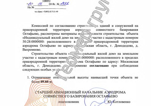 Объект: Жилой домТерритория: Частный земельный участок Для каких целей: Согласование с аэродромом ОстафьевоДля кого: Частное лицоРайон работ: Московская обл., г. Домодедово, д. Вахромеево