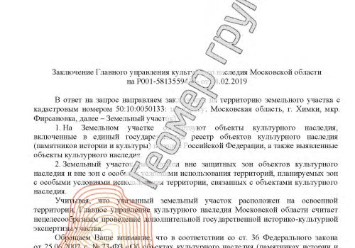 Согласование строительства с культурным наследием, г. Химки, мкр. Фирсановка