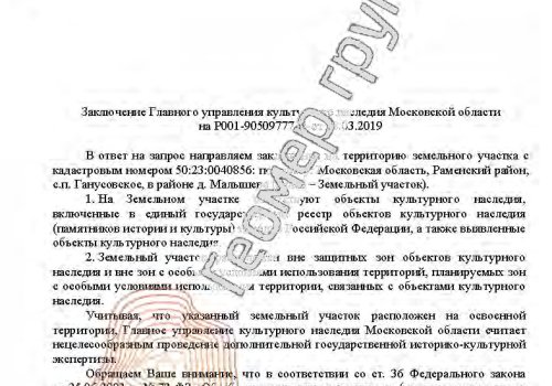 Согласование строительства с культурным наследием, с/п Ганусовское, в районе д. Малышево