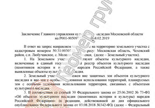 Согласование строительства с культурным наследием, с/п Любучанское, с. Молоди
