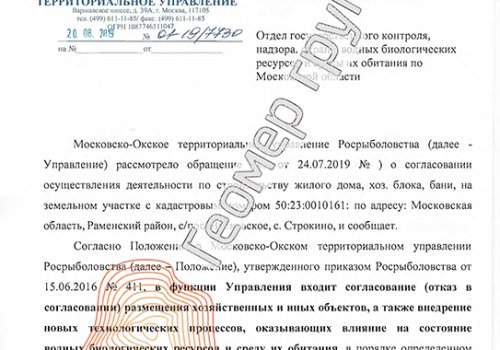 Согласование строительства с водоохранной зоной - агенство по рыболовству, с/п Волковское, с. Сорокино